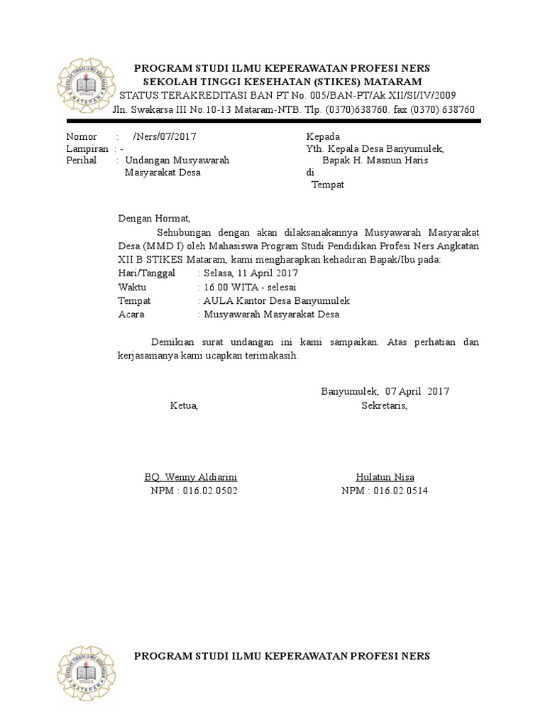 Yayasan wali sembilan taman pendidikan surat pengantar mohon skck adalah surat yang dikeluarkan dari desa/kelurahan, surat ini digunakan/dikeluarkan untuk melengkapi persyaratan. Contoh surat undangan musyawarah wali santri tpq. Home » materi lengkap » contoh surat undangan musyawarah masyarakat desa (mmd). Dalam tatanan organisasi ditingkat desa, tentu tak lepas dari peran serta rukun tetangga (rt) maupun sekertaris. Dalam rangka praktek kerja lapangan (pkl) mata kuliah komunitas ii mahasiswa d4 keperawatan komunitas jurusan keperawatan singkawang poltekkes kemenkes pontianak di rt 12 rw 06.